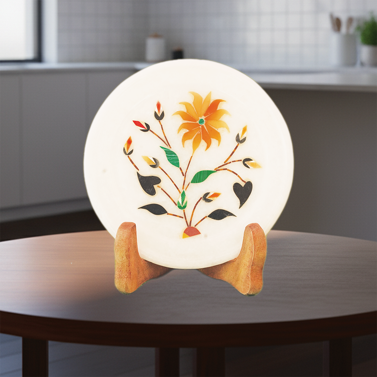 Miniature Gemstone Inlay Marble Plate – 5x5