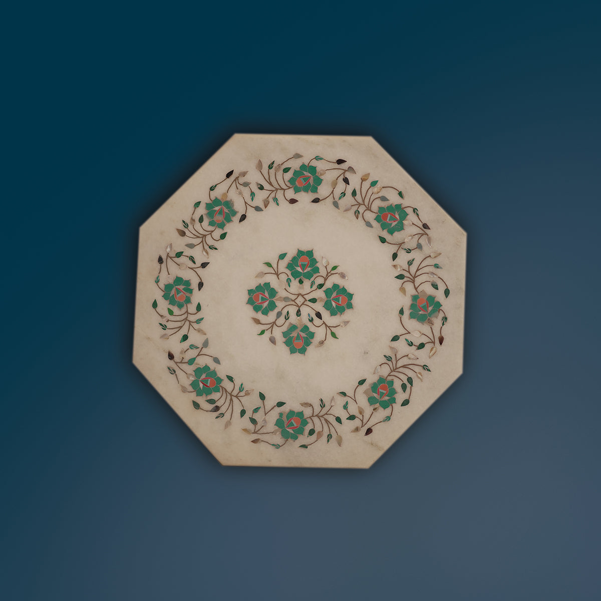 Premium handcrafted marble tabletop with gemstone detailing