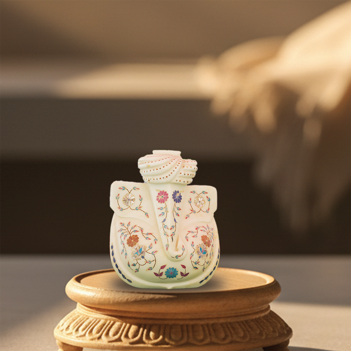 Premium White Marble Inlay Ganesh Ji (12 x 10 Inch)