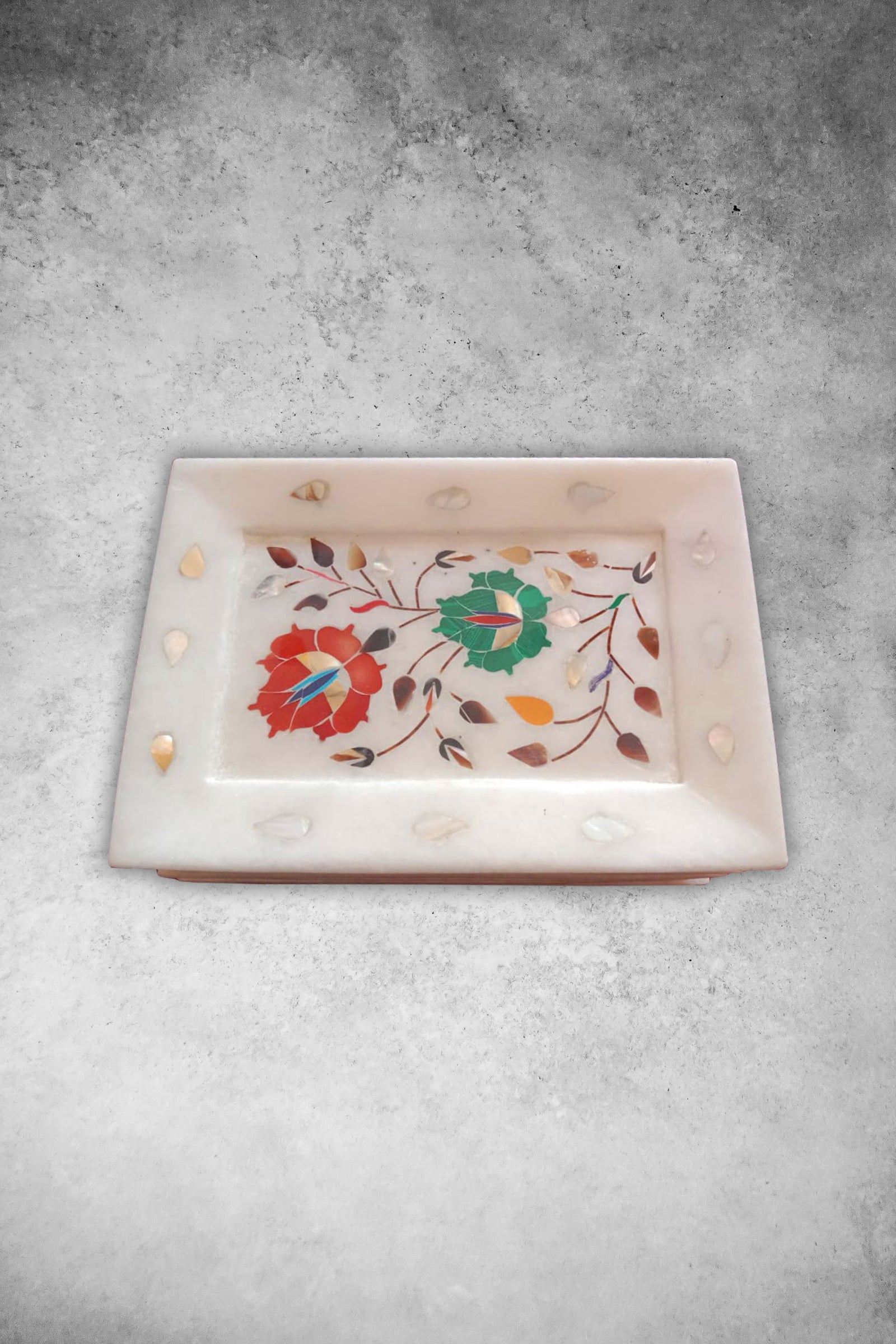 White Marble Inlay Tray – Handcrafted Luxury with Semi-Precious Stones
